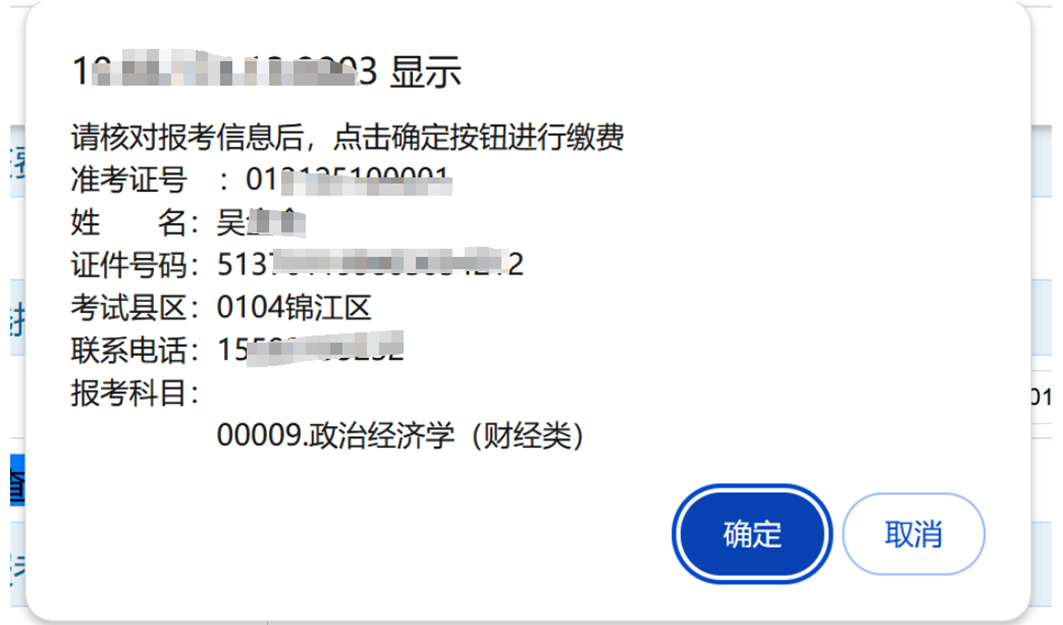 1.先分别核对报考信息、订单信息、身份信息,再前往缴费。