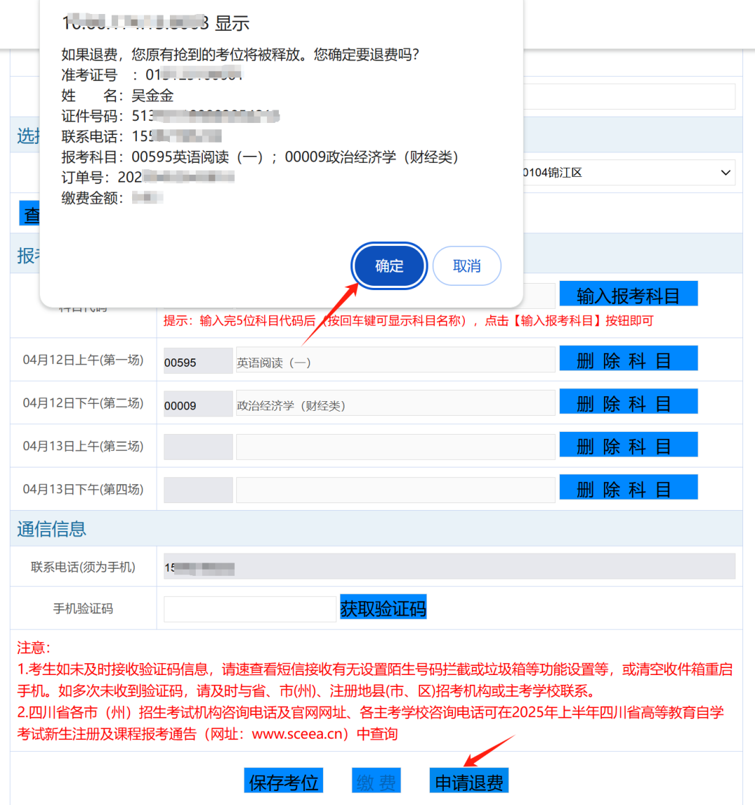 考生退费后,系统将实时清空已保存的报考信息并释放考位,因此申请退费需慎重。
