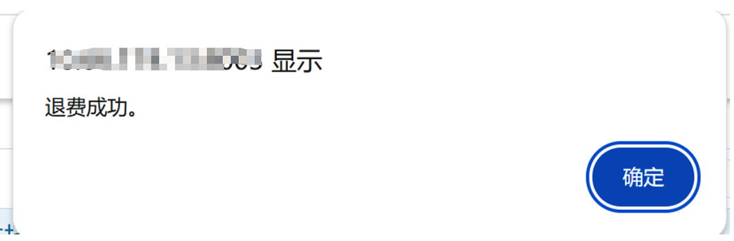 点击申请退费后成功提示如下: