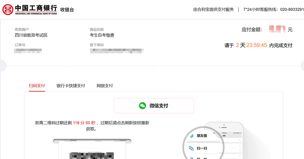 2.待系统弹出支付页面,核对订单无误后扫码支付(若无弹出,请检查是否浏览器对弹出式窗口做了拦截)。