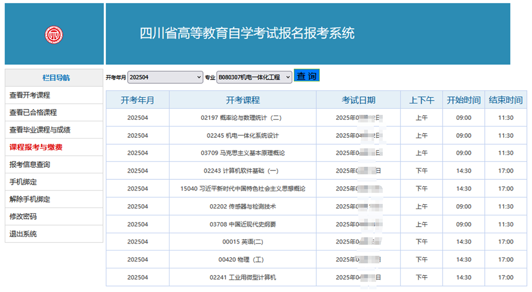 (三)查看开考信息与合格课程