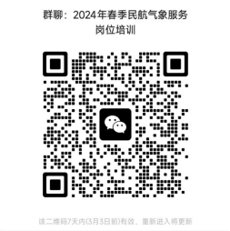 报名成功后扫描以下二维码加入微信群(群名:2024年春季民航气象服务岗位培训),进群后更改昵称格式为:姓名-单位-观测/预报/自观/信息系统。