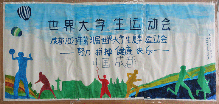 为强化广大青年学子的综合素质与体育精神,,为新时代社会发 展,做出贡献、彰显青年学子的朝气蓬勃的运动精神,奋进勃 发,以切实行动迎接大学生运动会的召开,2023年4 月我院分团委.学生会创作“五.四青年节”和“迎大运会”主题宣传画。