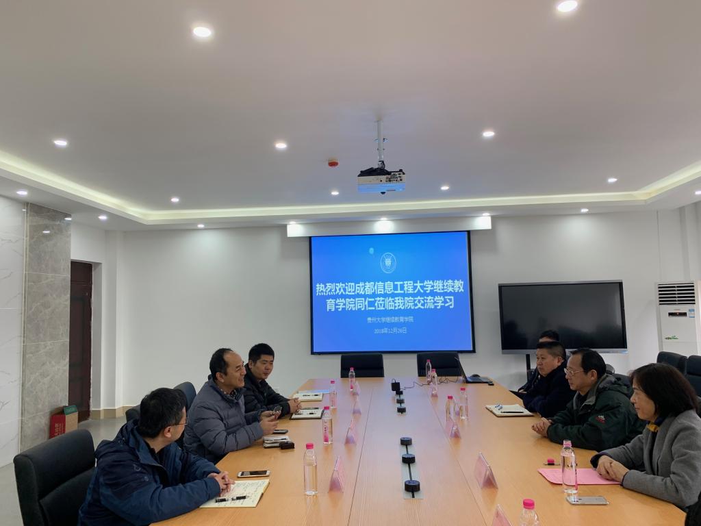 12月26日,为学习先进的办学理念和办学模式,开拓我院的办学思路,共建高等学历继续教育学习体系,进一步为学生提供高层次的学习能力提升平台,学院党总支书记张驰带队赴贵州大学继续教育学院学习交流。贵州大学继续教育学院党委副书记丁韬、学历教育总督学喻祖胜、学历教育分院王晓玲等领导及相关部门负责人,我院招生办主任李海林、自学考试办公室主任助理梁波、自学考试学习服务中心副主任薛小海等参加了学习交流座谈会。座谈会由贵州大学继续教育学院党委副书记丁韬主持。